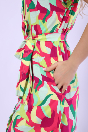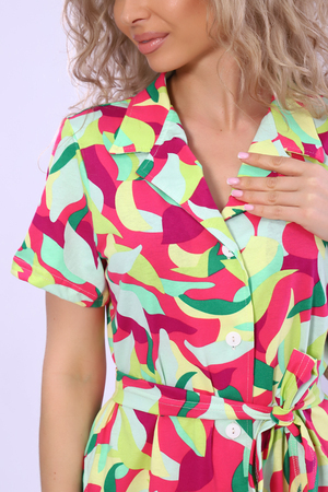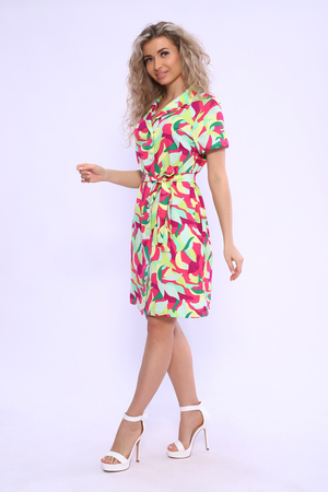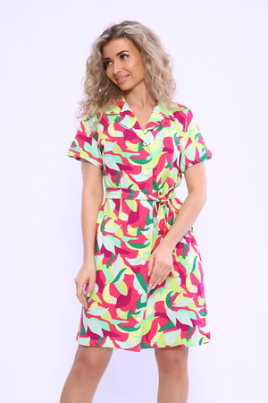 Платье на пуговицах с английским воротником и короткими рукавами. В боковых швах удобные карманы.