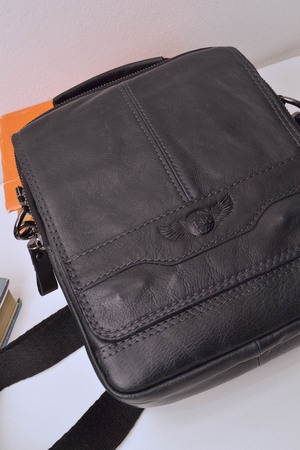 Мужская сумка из премиум натуральной кожи. Мягкий и долговечный материал. Внутри много дополнительных отсеков и кармашков. Размеры ориентировочно: 21*19 см.