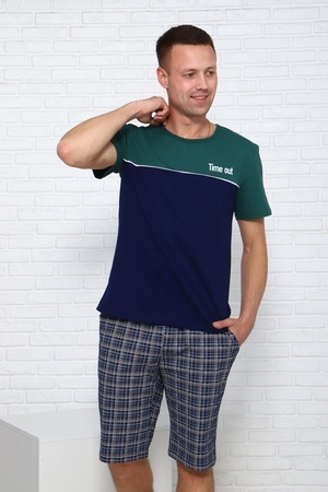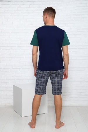 Костюм мужской летний: шорты на эластичном поясе, с карманами в боках и футболка прямого кроя с лаконичной надписью на груди. 100% хлопок обеспечит комфорт.