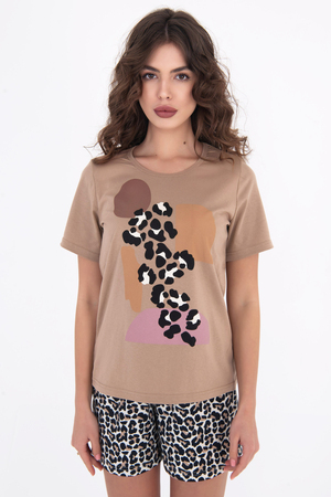 Стильная женская пижама станет отличным выбором для летних вечеров дома или даже для ночной фотосессии. Этот модный комплект состоит из хлопковой футболки с принтом и уютных трикотажных шорт. Она идеально подойдет для девушек, которые ценят комфорт и стиль. Легкая майка с красивым принтом и свободные шорты создают милый образ для приятного времяпрепровождения дома. Эта весенняя пижамка подарит ощущение уюта и комфорта каждой женщине. Длинные летние вечера будут ещё более приятными. Пижама с большими топами подходит не только для семейных посиделок, но и для романтических вечеров дома. Шорты с милыми принтами добавляют игривости этому женскому комплекту. Модная и стильная одежда всегда актуальна — а это удачное представительство! Ночные пижамы с пляжными майками не только удобны, но и привлекательны. Женщина в таком костюме будет выглядеть очаровательно. Премиум качество материалов делает эту коллекцию особенно привлекательной для молодежи. Это не просто повседневная одежда — это настоящая эротическая пижама, которая подчеркнет индивидуальность каждой девушки. Прикольный комплект, который подойдет как для спокойного времяпрепровождения дома. Выбрав этот товар, вы получите модную женскую одежду высокого качества для всех случаев жизни. Носите его как на природе, так и на частных вечеринках – он всегда будет сочетаться со стильными аксессуарами!