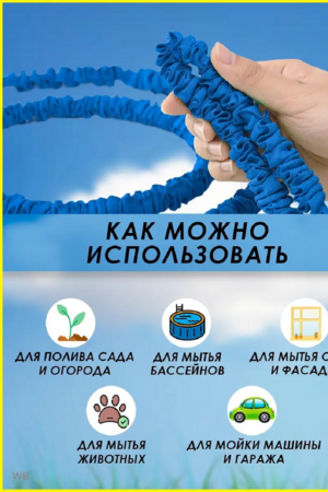 Легкий и компактный растягивающийся садовый поливочный шланг. В комплекте насадка с переключением режимов придачи воды: струя, душ, туман и тд. Новое, улучшенное качество - прочное и гибкое внутреннее покрытие позволяет Чудо - шлангу Ультра сжиматься и разжиматься сотни раз, а новое износостойкое внешнее покрытие - плетение из нейлона - сделало его более устойчивым к внешним воздействиям и загрязнениям. Шланг увеличивается в размерах при подаче воды до 3 раз, а при ее отключении уменьшается.