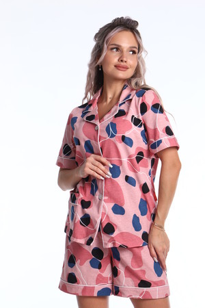 Женская трикотажная пижама из 100% хлопка. Комплект состоит из рубашки на пуговицах с коротким рукавом и шорт. Мы прекрасно понимаем, что для женщин максимальное удобство сочетается с красивым дизайном одежды, поэтому наша пижама объединила в себе все лучшие качества. Мягкий и нежный хлопок будет ласкать вашу кожу, а стильный дизайн сделает вас настоящим центром внимания дома и на улице. Это идеальный комплект для отдыха после трудового дня и приятных выходных дней. Приобрести такую пижаму значит инвестировать в собственный комфорт и уют.
