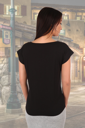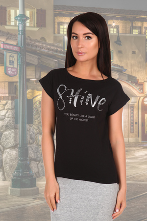 Футболка со спущенным плечом и с серебряной шелкографией