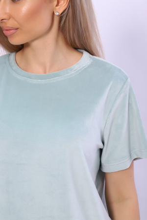 Костюм повседневный с шортами из мягкого велюра. В комплект входят: футболка с коротким рукавом с округлым вырезом горловины и шорты с карманами и поясом на резинке. Удобный велюровый костюм имеет свободный покрой, что делает его универсальной одеждой, которая подойдет на любую фигуру. Он не сковывает движения, скрывает недостатки и подчеркивает достоинства фигуры. Удобные шорты имеют комфортную посадку, резинка не давит, не скручивается, не перетягивает талию. Костюм универсальный, его приятно носить дома и на улице.