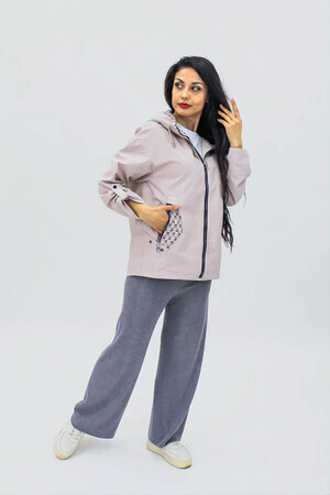 Эта ветровка сочетает в себе современную элегантность и практичность. Она изготовлена из современной ткани нового поколения, которая приятна на ощупь, выглядит красиво и дорого. Ветровка обладает ветрозащитными и водонепроницаемыми свойствами, она не продувается и не промокает, но при этом поддерживает внутри оптимальную температуру, выпуская лишний пар и влагу наружу, что дает ощущение безупречного комфорта. Куртка с удобным капюшоном, по краю которого вшита резинка, а на ворот выведены аккуратные фиксаторы - он плотно застегивается и легко регулируется, защищая Вас от ветра и непогоды. Дизайн с карманами на молнии и патами на рукавах обеспечивает удобство и функциональность, а внутренняя часть капюшона и карман, украшенные стильным принтом вдохновленным атмосферой мира французской моды и шика, придают этой ветровке особый шарм и утонченный вид. С этой ветровкой ваш стиль будет безупречен в любой ситуации. Благодаря широкому размерному ряду, она идеально подходит для любой фигуры, обеспечивая максимальный комфорт и удобство. Модель представлена в актуальных цветовых решениях, что позволяет подобрать ее под любой гардероб.  Стильная модель эффектно сочетается практически с любой обувью для комфортного современного образа на каждый день. Подходит для девушек и женщин любого возраста и любого роста: высокого, среднего или невысокого.  Ее выбирают для повседневной носки, чтобы добраться на работу в офис, на учебу в школу, на занятия в колледж или для прогулок с подружками, и тд.  Удобная и модная куртка – основа женского стильного и модного образа. Ветровка легко стирается, быстро сушится, приятно носится. Температурный режим от +5С до +20С (для каждого температурный режим отличается, в связи с индивидуальным восприятием погодных температур).