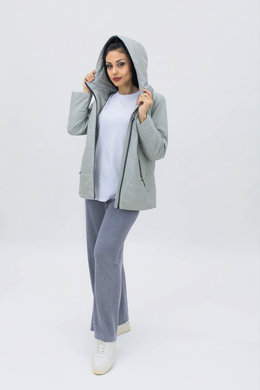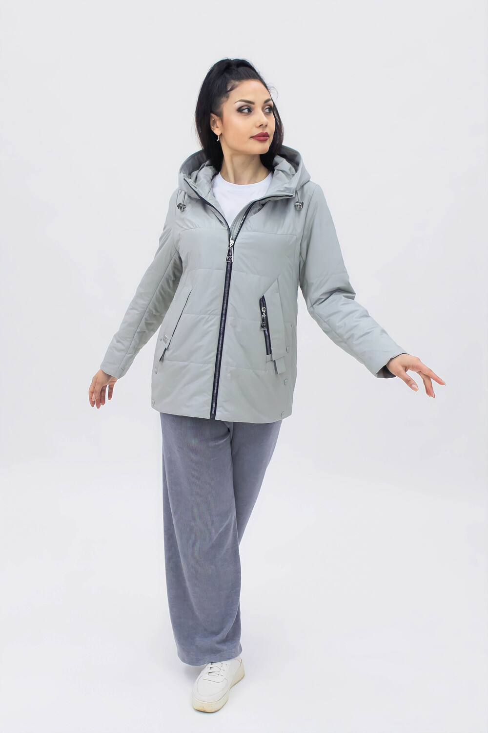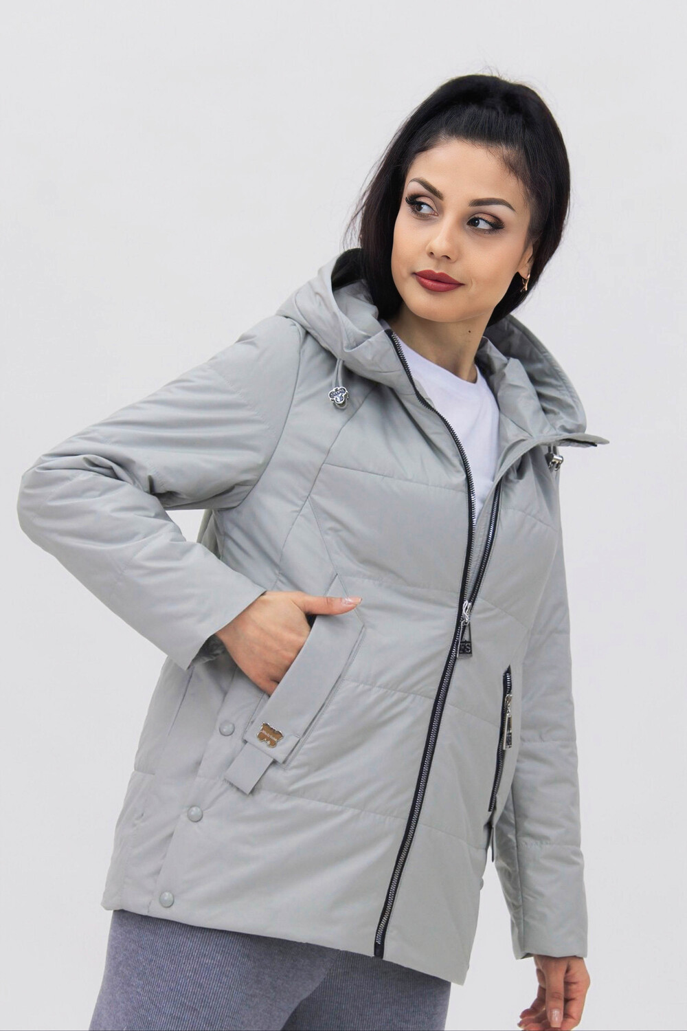 Стильная и легкая демисезонная куртка на теплую весну или осень с капюшоном, средней длины, из приятной на ощупь специальной курточной ткани, к которой не прилипает грязь или шерсть домашних любимцев. Модель имеет прямой свободный крой, не длинный и в ней Вам будет удобно перемещаться по городу, в транспорте или на автомобиле. Куртка качественная, прошита  стежком (не ультрастеп), что означает, что утеплитель однородно фиксируется и не имеет возможности скапливаться в отдельных участках, делая изделие более долговечным и практичным. Куртка с высоким воротником стойкой переходит в глубокий капюшон,  который дополнен аккуратными фиксаторами позволяющими плотно застегнуть и легко его регулировать, обеспечивая надежную защиту от ветра и холода - необходимая вещь для прохладной погоды в условиях переменчивого российского климата. Модель украшена стильными и актуальными элементами, расположенными так,  что бы визуально скорректировать фигуру,  делая образ более привлекательным. Благодаря широкому размерному ряду, она идеально подходит для любой фигуры, обеспечивая максимальный комфорт и удобство. Модель представлена в актуальных цветовых решениях, что позволяет подобрать ее под любой гардероб.  Куртка незаменимая классическая вещь в городской среде, которая помогает создать современные образы в стилистике тревел, стрит стайл, спорт и кэжуал.  Подходит для девушек и женщин любого возраста и любого роста: высокого, среднего или невысокого.  Ее выбирают для повседневной носки, чтобы добраться на работу в офис, на учебу в школу, на занятия в колледж или для прогулок с подружками.