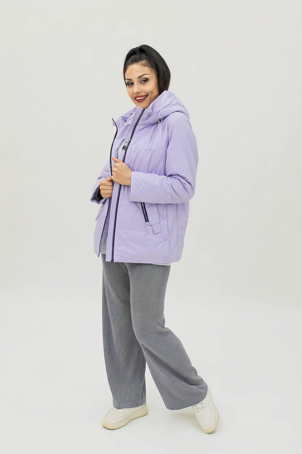 Стильная и легкая демисезонная куртка на теплую весну или осень с капюшоном, средней длины, из приятной на ощупь специальной курточной ткани, к которой не прилипает грязь или шерсть домашних любимцев. Модель имеет прямой свободный крой, не длинный и в ней Вам будет удобно перемещаться по городу, в транспорте или на автомобиле. Куртка качественная, прошита  стежком (не ультрастеп), что означает, что утеплитель однородно фиксируется и не имеет возможности скапливаться в отдельных участках, делая изделие более долговечным и практичным. Куртка с высоким воротником стойкой переходит в глубокий капюшон,  который дополнен аккуратными фиксаторами позволяющими плотно застегнуть и легко его регулировать, обеспечивая надежную защиту от ветра и холода - необходимая вещь для прохладной погоды в условиях переменчивого российского климата. Модель украшена стильными и актуальными элементами, расположенными так,  что бы визуально скорректировать фигуру,  делая образ более привлекательным. Благодаря широкому размерному ряду, она идеально подходит для любой фигуры, обеспечивая максимальный комфорт и удобство. Модель представлена в актуальных цветовых решениях, что позволяет подобрать ее под любой гардероб.  Куртка незаменимая классическая вещь в городской среде, которая помогает создать современные образы в стилистике тревел, стрит стайл, спорт и кэжуал.  Подходит для девушек и женщин любого возраста и любого роста: высокого, среднего или невысокого.  Ее выбирают для повседневной носки, чтобы добраться на работу в офис, на учебу в школу, на занятия в колледж или для прогулок с подружками.
