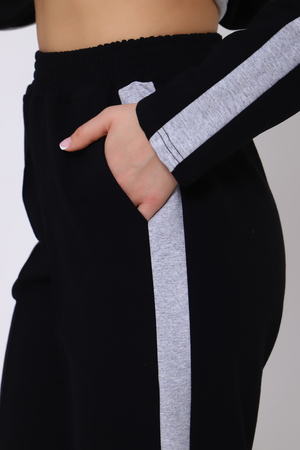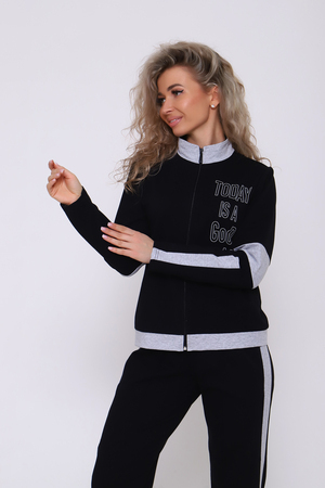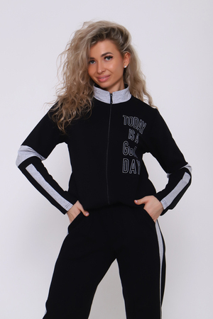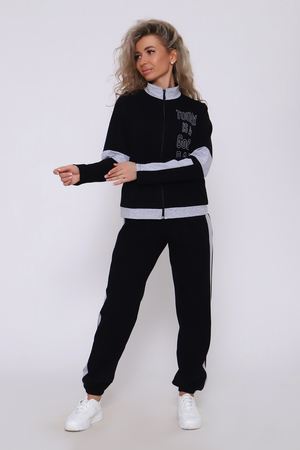 Молодежный костюм, который идеально подойдет на любой случай. Костюм состоит из кофты и брюк. Кофта на молнии, воротник стойка из отделочной ткани, пояс также из отделочной ткани. Рукав в данной модели особенно красив за счет вставок из отделочной ткани. На полочке неброская печать. Брюки с карманами и лампасами, низ на резинке, что очень удобно при носке. Пояс брюк обработан на поясной машине. Костюм отлично подойдет как для повседневной носки, так и для спорта и прогулки. В нашем модном костюме вы будете самой красивой!