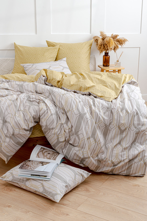NUANCE - постельное белье класса премиум из высококачественного натурального сатина. Коллекция ориентирована на покупателей, предпочитающих качественно и современный дизайн. Постельное белье выполнено из сатина высокой плотности (пряжа 40х40) с пигментным окрашиванием. Ткань шелковистая, очень приятная на ощупь. Пододеяльник и наволочки сшиты из основной ткани, простынь и обратная сторона пододеяльника выполнены из ткани-компаньона.