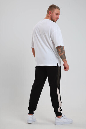Спортивные стильные брюки с лампасами, высокого качества из турецкой ткани. Пояс на резинке, по бокам два кармана на молнии, низ на манжетах. Отлично подходят для домашней и спортивной носки, сохраняя форму и не скатываясь после многочисленных стирок.