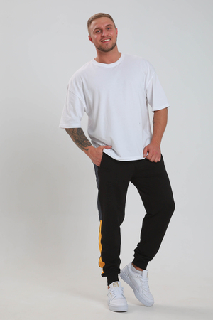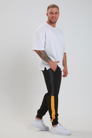 Спортивные стильные брюки с лампасами, высокого качества из турецкой ткани. Пояс на резинке, по бокам два кармана на молнии, низ на манжетах. Отлично подходят для домашней и спортивной носки, сохраняя форму и не скатываясь после многочисленных стирок.