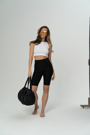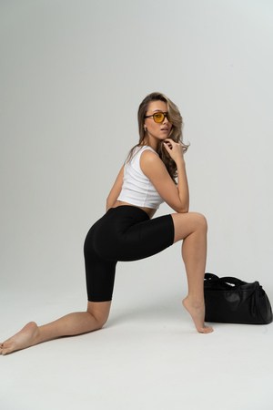 Совсем недавно велосипедки женские были элементом спортивного стиля. Удобство и свобода в движениях, делала велошорты незаменимыми для бега, фитнеса или катания на велосипеде. Но универсальность спортивных велосипедок и способность адаптироваться к любому стилю, сделала велосипедки базовым предметом любого женского гардероба. Черные облегающие велосипедки позволят создать массу смелых и интересных образов. Сшитые из бифлекса, они плотно облегают бедра, подчеркивая все изгибы тела. Данная модель женских шорт имеет широкий пояс и завышенную талию. Такой пошив велосипедок женских для фитнеса создает корректирующий эффект, визуально убирая с бедер и талии несколько сантиметров.  Они отлично будут сочетаться как с футболкой, так и с блузкой, поверх которой можно надеть строгий жакет. Если в твоем гардеробе еще нет женских велосипедок, то самое время приобрести, чтобы быть в тренде в новом сезоне.
