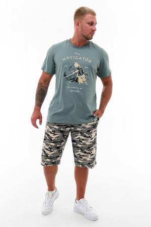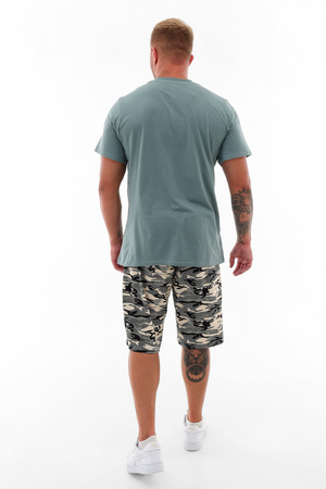 Мужской костюм выполнен из натуральной ткани 100% хлопка. Модель для повседневной, домашней носки, состоящая из шорт и легкой, свободной футболки, с коротким рукавом. Комплект костюма состоит из широкого размерного ряда, шорты имеют 2 боковых кармана, также эластичный пояс. Наш костюм выполнен так, что при носке он не будет сковывать Ваши движения, а только дарить наслаждение.