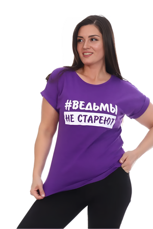 Модель: Футболка хлопок с отворотами и надписью "Ведьмы не стареют". Арт. 720
