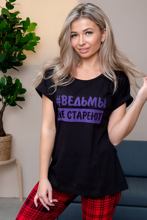 Модель: Футболка хлопок с отворотами и надписью "Ведьмы не стареют". Арт. 720