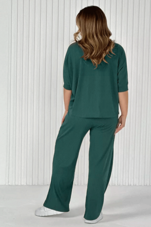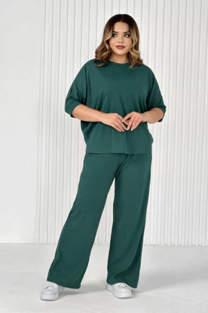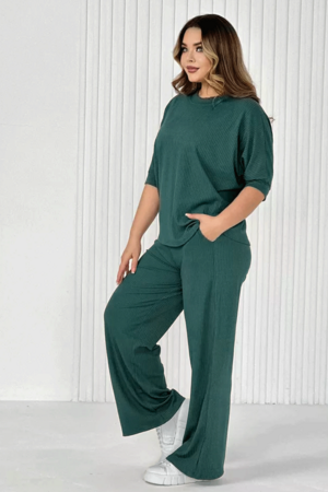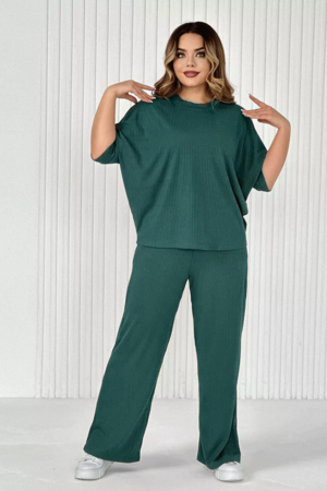 Стильный женский трикотажный костюм из ткани лапши. Комплект состоит из футболки - летучая мышь и брюк широкого кроя с поясом на резинке и карманами по бокам. Модель подойдет для вечернего и повседневного образа, отлично сочетается как с кроссовками, так и с туфлями. Костюм отлично подходит для прогулки, выезда на природу или похода в ресторан. Удобный свободный вверх отличный вариант на лето, приятные к телу штаты удобны и практичны. Длина рукава указана от горловины, а футболка костюма достаточно свободная, поэтому подойдет на любую фигуру. Важно! Подбирая для себя нужный размер, смотрите на замеры брюк.