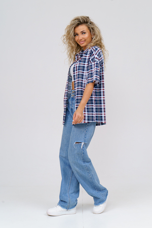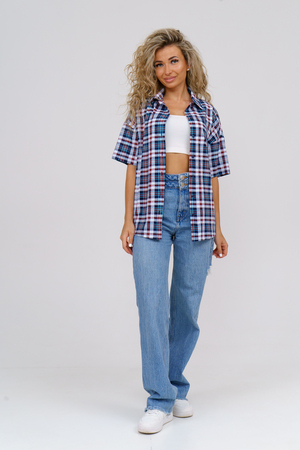 Женская стильная рубашка выполнена из 100% хлопчатобумажного полотна. Современный дизайн ткани в виде клетки и отличное качество делает изделие модным, легким и приятным на ощупь, не сковывает движения, поэтому отлично подойдет как для школы, дома и работы, так и для повседневной носки. Модель дополняет рубашечный воротник и планка с расстёгивающимися пуговицами, делая её более комфортной. Женская свободная рубашка не сковывает движения, поэтому отлично подойдет будущим мамам, беременным женщинам и кормящим. Расстёгивающаяся планка сделает кормление малыша удобным и комфортным, а за счет качественного хлопкового трикотажа еще и безопасным и экологичным. Мы специально разработали рубашку для женщин большого размера. Большие размеры любят и подростки, которые предпочитают вещи оверсайз (oversize). Рубашка женская - это базовая вещь в гардеробе девушки или женщины, является идеальным вариантом для офиса, работы, школы и путешествий. Удлиненную рубашку можно носить дома и в качестве повседневной одежды.