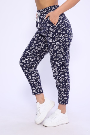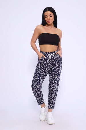 Брюки женские из кулирной глади на притачном поясе. В пояс вставлен шнур. Имеются карманы с бочком. Длина брюк 7/8.