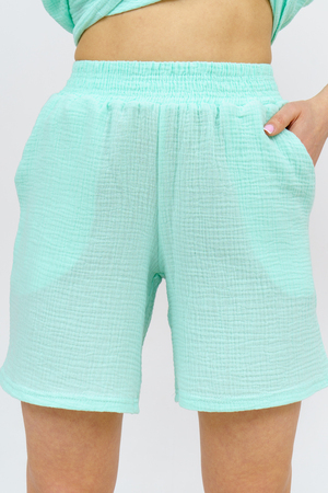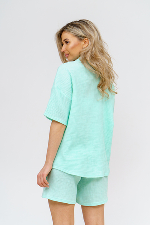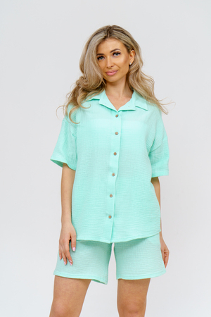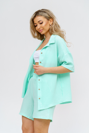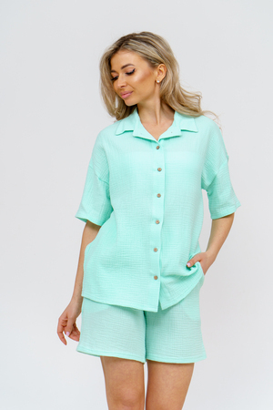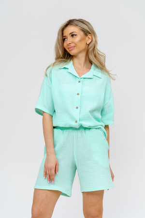 Модный костюм в стиле oversize выполнен из воздушного и приятного к телу 2-х слойного жатого муслина. Это одна из самых модных и популярных моделей сезона. Рубашка имеет слегка удлинённую спинку, спущенную линию плечевого шва, укороченный рукав, классический рубашечный воротник и планку на пуговках. Шорты бермуды с высокой посадкой создадут модный образ для любой девушки. Пояс шорт выполнен на специализированной поясной машине, что добавляет изделию большую износостойкость и эстетический внешний вид. По бокам, для удобства, расположены вместительные карманы. Изделие из муслина имеет много положительных качеств: нежность и лёгкость, высокая прочность и воздухопроницаемость. А модные цвета этого лета добавляют законченность деталям и определяют "must have" сезона. За счёт свободного фасона костюм можно носить с любым типом фигуры, отлично подойдёт для беременных женщин, а также кормящих мам. Женская хлопковый костюм идеален как для лета, так и для прохладного вечера. С помощью такого костюма Вы можете создать любой образ. А также отправиться на праздник, вечеринку или на прогулку, на пляж или провести незабываемый вечер дома. Модель такого плана идеально подойдёт и в качестве подарка для себя и своих любимых! Стирать муслиновые вещи нужно только в теплой воде при температуре не выше 40°С. У нас Вы также можете приобрести только рубашку из такого материала- модель 36766 и создать свой неповторимый образ!