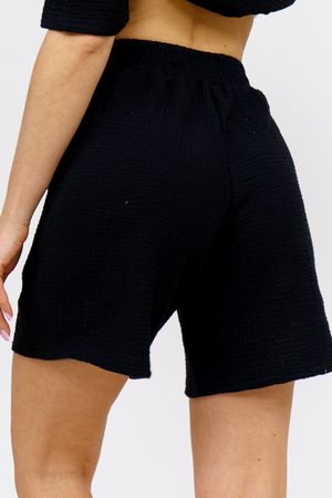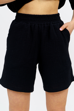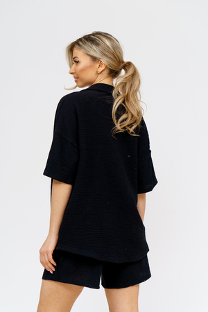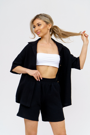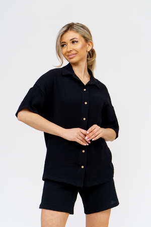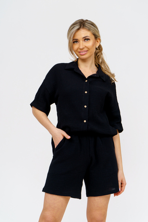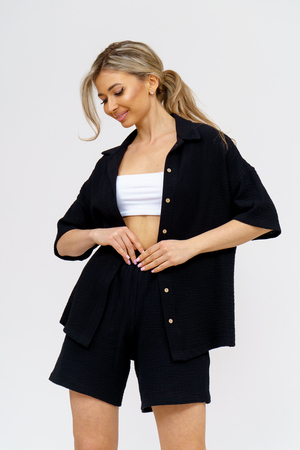 Модный костюм в стиле oversize выполнен из воздушного и приятного к телу 2-х слойного жатого муслина. Это одна из самых модных и популярных моделей сезона. Рубашка имеет слегка удлинённую спинку, спущенную линию плечевого шва, укороченный рукав, классический рубашечный воротник и планку на пуговках. Шорты бермуды с высокой посадкой создадут модный образ для любой девушки. Пояс шорт выполнен на специализированной поясной машине, что добавляет изделию большую износостойкость и эстетический внешний вид. По бокам, для удобства, расположены вместительные карманы. Изделие из муслина имеет много положительных качеств: нежность и лёгкость, высокая прочность и воздухопроницаемость. А модные цвета этого лета добавляют законченность деталям и определяют "must have" сезона. За счёт свободного фасона костюм можно носить с любым типом фигуры, отлично подойдёт для беременных женщин, а также кормящих мам. Женская хлопковый костюм идеален как для лета, так и для прохладного вечера. С помощью такого костюма Вы можете создать любой образ. А также отправиться на праздник, вечеринку или на прогулку, на пляж или провести незабываемый вечер дома. Модель такого плана идеально подойдёт и в качестве подарка для себя и своих любимых! Стирать муслиновые вещи нужно только в теплой воде при температуре не выше 40°С. У нас Вы также можете приобрести только рубашку из такого материала- модель 36766 и создать свой неповторимый образ!
