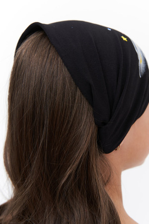 Стильная, яркая косынка для девочек. Встроенная резинка в изделия позволяет косынке прочно держаться на голове. Незаменима в жаркие летние дни.