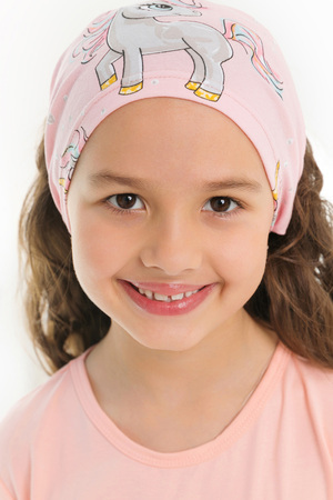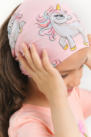 Стильная, яркая косынка для девочек. Встроенная резинка в изделия позволяет косынке прочно держаться на голове. Незаменима в жаркие летние дни.