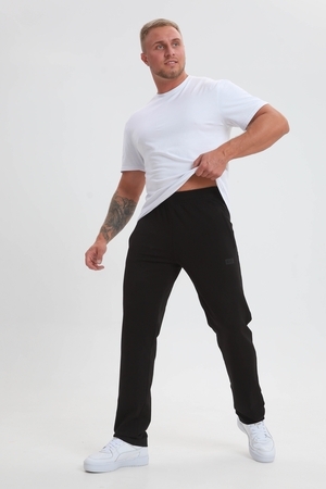 Трикотажные спортивные брюки для мужчин, базовая вещь гардероба. Штаны прямого кроя с двумя карманами на молнии и с эмблемой сбоку, пояс на резинке с внутренним шнурком. Брюки очень удобные и легкие, качественная турецкая ткань. Подойдут как для повседневного ношения, также для прогулок, занятий спортом.