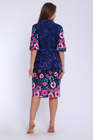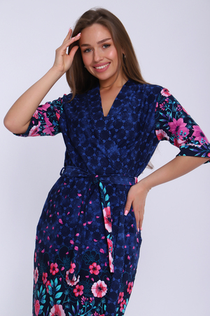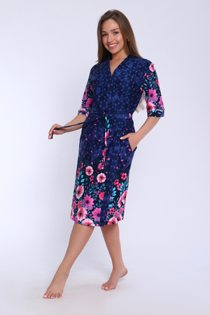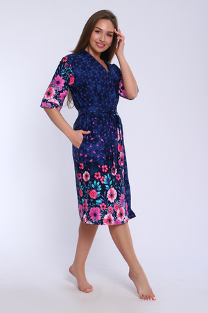 Халат запашной с поясом. Рукава с манжетами. Карманы в боковых швах.
