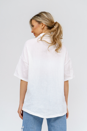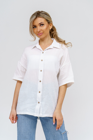 Модная рубашка в стиле oversize выполнена из воздушного и приятного к телу 2-х слойного жатого муслина. Это одна из самых модных и популярных моделей сезона. Рубашка имеет слегка удлинённую спинку, спущенную линию плечевого шва, укороченный рукав, классический рубашечный воротник и планку на пуговках. А модные цвета этого лета и нежнейшая ткань добавляют законченность деталям и определяют "must have" сезона. За счёт свободного фасона рубашку можно носить с любым типом фигуры, отлично подойдёт для беременных женщин, а также кормящих мам. Женская хлопковая рубашка идеальна как для лета, так и для прохладного вечера. С помощью такой рубашки Вы можете создать деловой образ или летний расслабленный. А также отправиться на праздник или вечеринку, в школу или на прогулку, на пляж или провести незабываемый вечер дома. Модель такого плана идеально подойдёт и в качестве подарка для себя и своих любимых! Стирать муслиновые вещи нужно только в теплой воде при температуре не выше 40°С. У нас Вы также можете приобрести целый костюм из такого материала- модель 36761 рубашка и шорты и создать свой неповторимый образ!