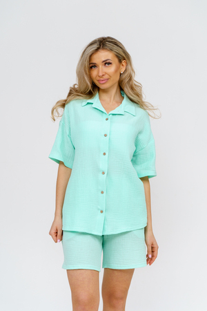Модная рубашка в стиле oversize выполнена из воздушного и приятного к телу 2-х слойного жатого муслина. Это одна из самых модных и популярных моделей сезона. Рубашка имеет слегка удлинённую спинку, спущенную линию плечевого шва, укороченный рукав, классический рубашечный воротник и планку на пуговках. А модные цвета этого лета и нежнейшая ткань добавляют законченность деталям и определяют "must have" сезона. За счёт свободного фасона рубашку можно носить с любым типом фигуры, отлично подойдёт для беременных женщин, а также кормящих мам. Женская хлопковая рубашка идеальна как для лета, так и для прохладного вечера. С помощью такой рубашки Вы можете создать деловой образ или летний расслабленный. А также отправиться на праздник или вечеринку, в школу или на прогулку, на пляж или провести незабываемый вечер дома. Модель такого плана идеально подойдёт и в качестве подарка для себя и своих любимых! Стирать муслиновые вещи нужно только в теплой воде при температуре не выше 40°С. У нас Вы также можете приобрести целый костюм из такого материала- модель 36761 рубашка и шорты и создать свой неповторимый образ!