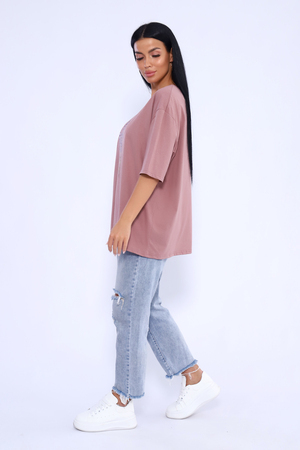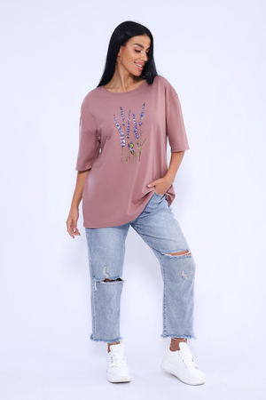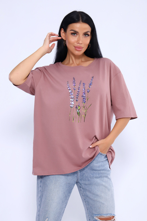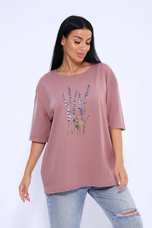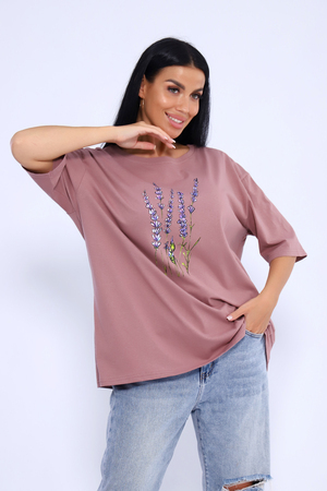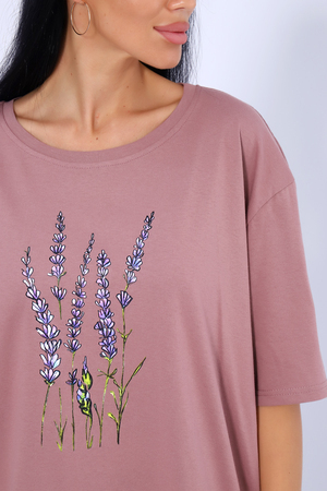 Футболка с милым принтом лаванда в стиле "оверсайз". Большие размеры! Горловина обработана обтачкой из основной ткани. Рукава и низ в подгибку.