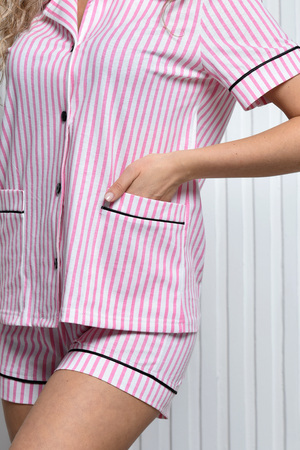 Домашняя пижама, состоящая из комплекта рубашки с шортами – отличный вариант для дома! Изготовлена из ткани кулирка премиум качества. Такой костюм - отличный вариант как для сна, так и для повседневной носки. Модель состоит из рубашки на пуговицах с коротким рукавом с манжетой и отложным воротником и шорт прямого кроя на эластичной резинке с высокой посадкой, которые обеспечивают свободу движений. Для сохранения всей глубины цвета даже после многочисленных стирок, ухаживайте за изделием должным образом. Рекомендуем стирать на бережном режиме, при температуре не выше 40 градусов.
