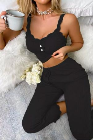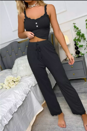 Этот стильный и сексуальный наряд также станет прекрасным подарком для любой женщины, добавляя шарма и уюта в ее гардероб. Не требующая глажки ткань делает эту пижаму практичным и удобным выбором для любого времени года. Почувствуйте себя женственной и уверенной в этой эстетичной пижаме, которая станет вашим незаменимым спутником в уютных моментах отдыха. Этот нарядный комплект включает в себя широкие брюки палаццо и милую майку топ женскую в рубчик, создавая уютный и модный образ. Благодаря трикотажной ткани, пижама обеспечивает идеальную посадку и свободу движений, делая ее идеальной для домашнего отдыха и сна.