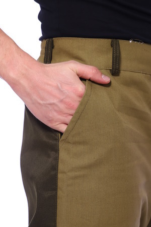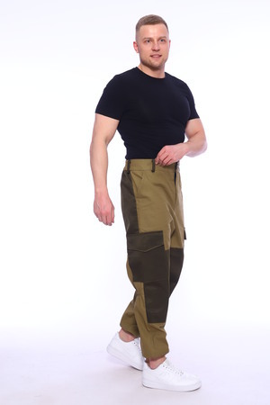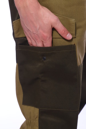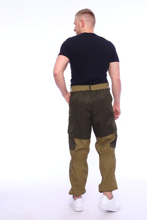 Брюки горка мужские тактические летние – универсальная спецодежда. Удобная спортивная одежда для любого вида активного отдыха и работы. Модель выполнена из качественного хлопкового полотна: палаточное полотно (100% хлопок) цвета хаки. Материал прочный и износостойкий плотностью 240 гр/м2, хорошо держит форму и не растягивается. Не склонен к образованию катышек, не линяет. Для предотвращения быстрого истирания основные проблемные места усилены дополнительным слоем ткани плотностью 215 гр/м2 с содержанием полиэстера 65%. Изделие рекомендуется стирать на деликатном режиме при температуре не выше 30С во избежание усадки. Брюки с высокой талией с поясом, застегивающимся на две пуговицы, снабженным резинкой и шлевками под широкий ремень. Гульф на молнии. Тактические штаны свободного кроя, не сковывают движений и подойдут для любого типа фигуры. Летние штаны снабжены двумя типами карманов: два боковых прорезных кармана и два накладных по бокам с застежкой на кнопку. В низки брючин вшита резинка, которая препятствует попаданию под штанины ветов, или сухой колючей травы. Так же могут быть использованы в качестве джоггеров.
