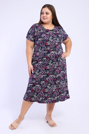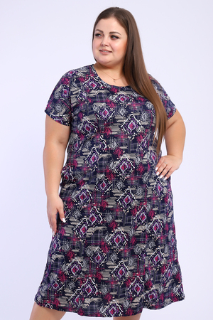 Платье свободного кроя, спинка разрезная. Полочка с отрезными бочками. В боковых швах карманы.