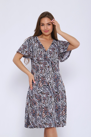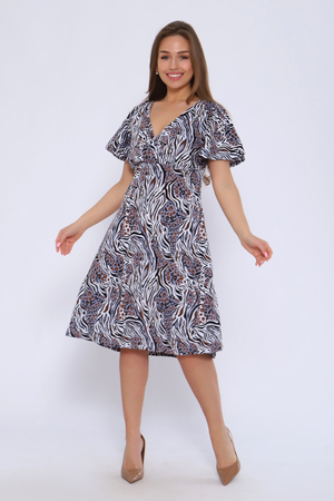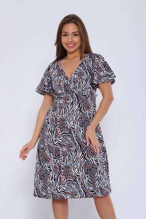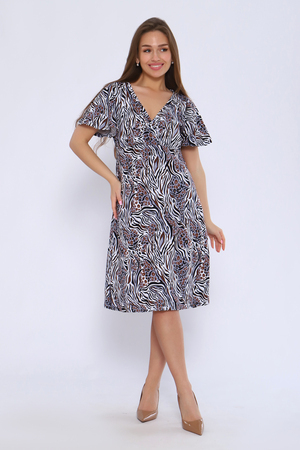 Платье полуприлегающего силуэта с короткими рукавами - крылышками. Лиф запашной со сборкой.