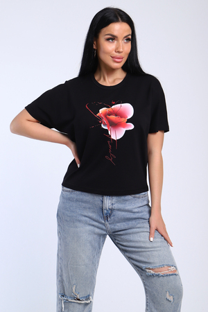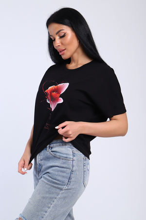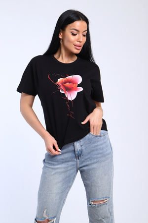 Футболка в стиле летучая мышь, рукав спущенный, свободного кроя с принтом. Ткань мягкая, комфортная. Сочетается обсалютно с любым видом одежды.
