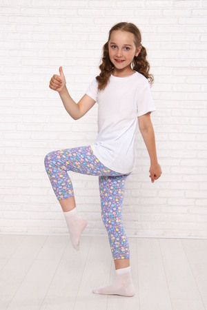 Стильные укороченные леггинсы для девочки классического кроя имеют комфортную среднюю посадку. Лосины с поясом из эластичной резинкой, не врезаются в кожу и не вызывают дискомфорта в течение дня во время носки. Леггинсы для девочки на 92 % состоят из хлопка с добавлением лайкры 8 % (без начёса), которая делает ткань тянущейся. Лосины летние для девочки обеспечивают свободу движений. Для пошива цветных лосин используется прочная ткань, которая обеспечивает длительный срок службы. Леггинсы для девочки не вызывают раздражений на чувствительной коже детей.