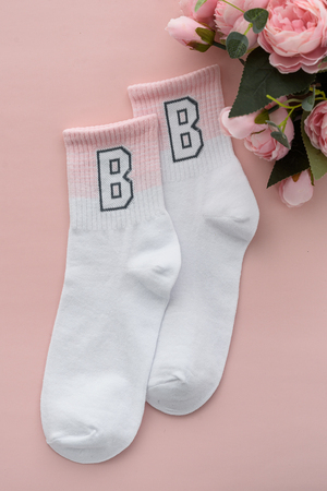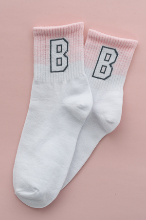 Модные носки для девушек и женщин. Широкая резинка нежного цвета, с буквой В. В комплекте 1 пара одного цвета на выбор.