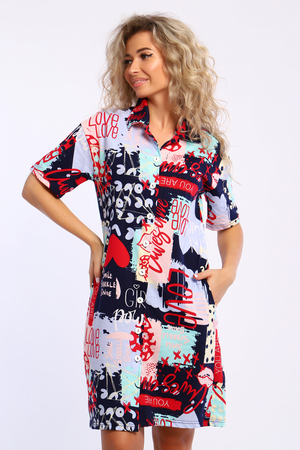 Халат полуприлегающего силуэта на пуговицах. Рукава короткие. Карманы в боковых швах.