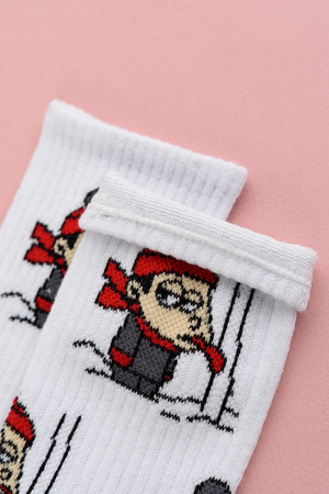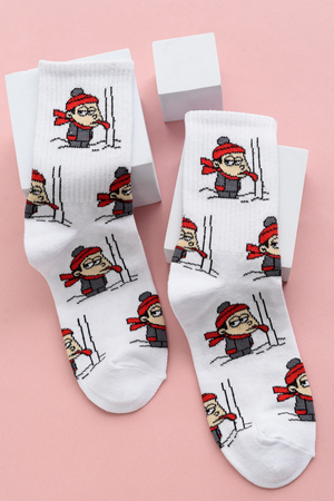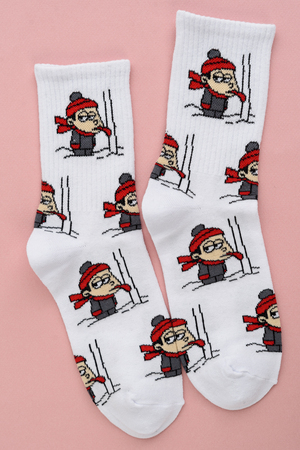 Если ищете женские модные и интересные носки с приколами - то это к нам. Рекомендуем присмотреться к носочкам с веселым рисунком мальчика облизывающего железный столб на морозе. Ведь все так делали, да?