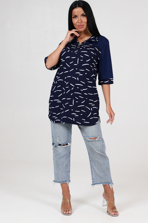 Низ женской туники имеет полукруглую форму, что делает его ещё более изящным и женственным. Комбинация всех этих элементов создаёт неповторимый образ, который подчеркнет вашу неповторимость.