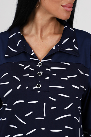 Особое внимание уделяется деталям: на полочке туники расположена планка, украшенная декоративными пуговицами. Этот элемент добавляет изюминку и придаёт изделию дополнительную привлекательность.