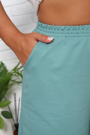 Костюм женский: шорты с боковыми карманами, на поясе и футболка классическая с короткими рукавами и стильным принтом на груди. Трикотаж отличного качества подарит комфорт и презентабельный вид.