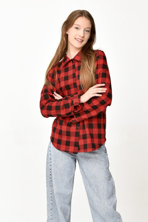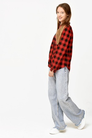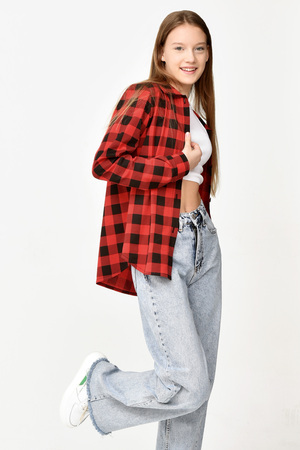 Рубашка в красную и серую клетку для девочки подростка из 100% хлопка. Яркая плотная и главное дышащая ткань - будет отличным выбором для летней одежды. Такая вещь будет универсальной в гардеробе любой девчонки, ведь ее можно сочетать абсолютно с разными образами. Она будет модной в любое время, клетка давно зарекомендовала себя как вечная классика стиля. В наличии детские размеры, которые подойдут юным леди от 8-10 лет и старше. Удлиненный фасон отлично гармонирует с неровной линией низа и подчеркивает силуэт фигуры.