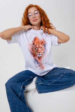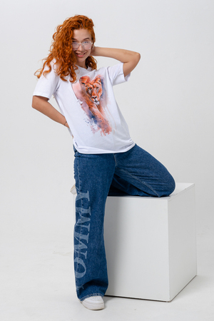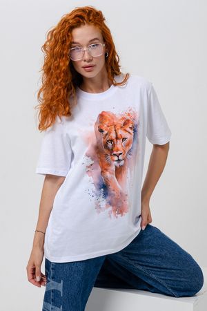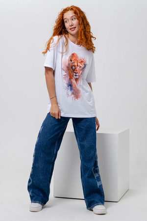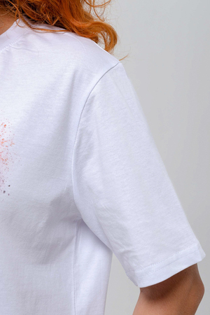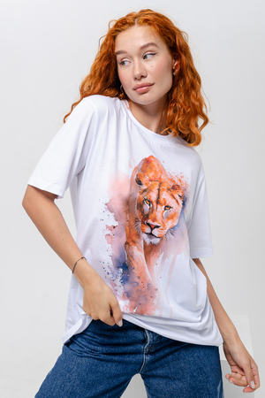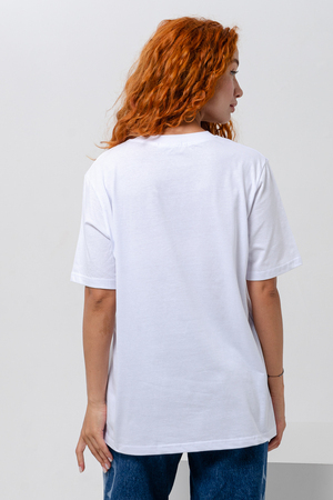 Футболка прямая, свободная, средней длины, с округлой горловиной. Рукав короткий. Горловина обработана эластичной обтачкой.