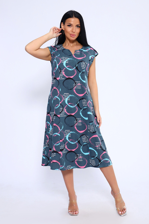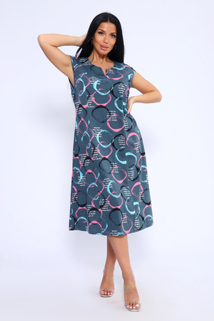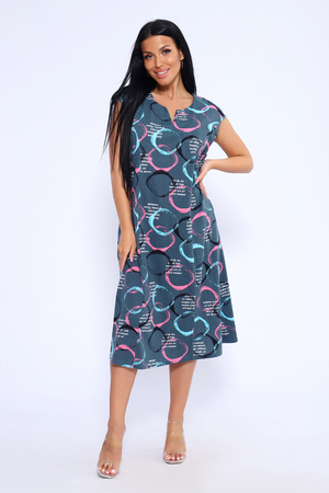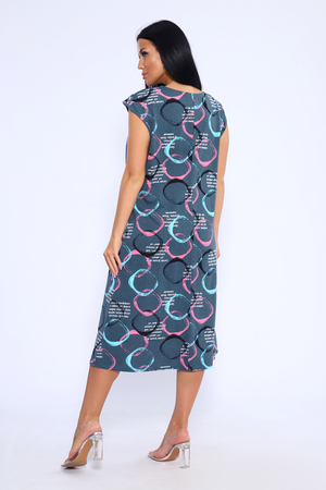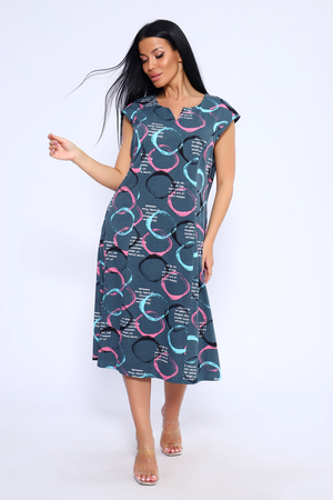 Лёгкое и удобное платье из 100% хлопка – идеальный выбор для тех, кто ценит комфорт и стиль. Благодаря идеальным лекалам, это платье прекрасно сидит на любой фигуре, позволяя вам наслаждаться ощущением спокойствия и уюта после рабочего дня или посвятить себя повседневным заботам по дому. Платье доступно в больших размерах, что делает его подходящим для широкого круга женщин. Модная контрастная расцветка с кругами придаёт ему особый шарм. Горловина имеет круглую форму с декоративной капелькой в виде буквы V, что добавляет изюминку в общий образ. Платье имеет спущенную пройму и карманы в боковых швах, что делает его не только стильным, но и практичным.