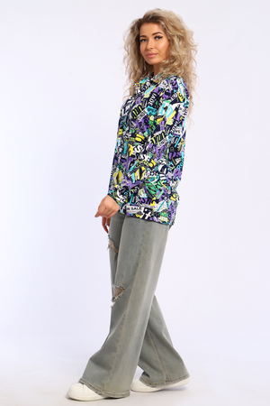 Туника на пуговицах, с длинными рукавами на манжетах. Комфортна для повседневной носки.