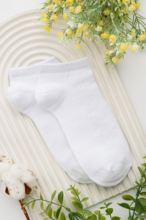 Набор укороченных женских носков. В комплекте 3 пары, цветочные узоры на верхней стороне.