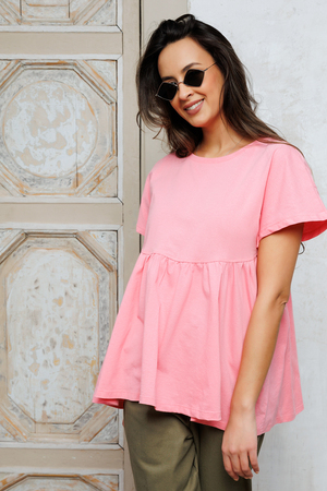 Однако, самой привлекательной особенностью этой хлопковой футболки является ее баска. Она создает завышенную талию, что делает фигуру еще более изящной и женственной, а свободный силуэт футболки позволяет скрыть некоторые недостатки. Баска подчеркивает талию и акцентирует внимание на вашей женственности, создавая притягательный силуэт.